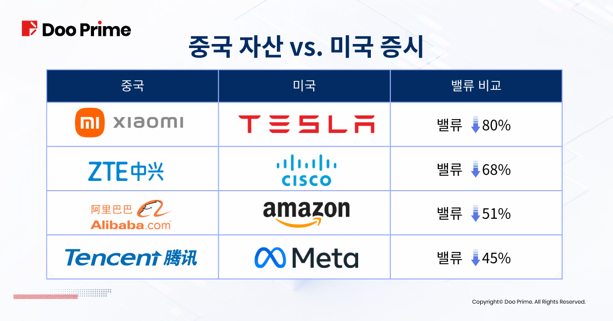 특히 중국의 우량 인터넷 기업들은 미국 동종 기업들과 비교했을 때 실적 성장 측면에서 큰 차이가 없음에도 불구하고 여전히 상당한 밸류에이션 할인(Valuation Discount)을 받고 있습니다