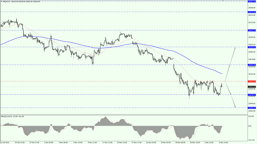 HK50 今日关注 23818 一线,如果 HK50 力度上破 23818 一线,并站稳于 23818 一线上方,届时关注 24469 和 25160 两个位置的压制力度;如果 HK50 稳定运行于 23818 一线下方,届时依旧关注 23294 一线的支撑力度。