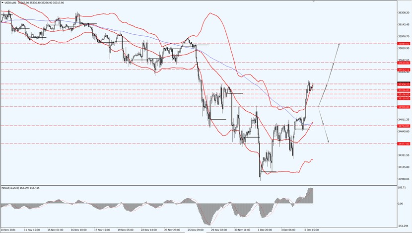 如果道指力度下破 34990 一线,则将打开进一步的下行空间,届时关注 34724 和 34477 两个位置的支撑力度。