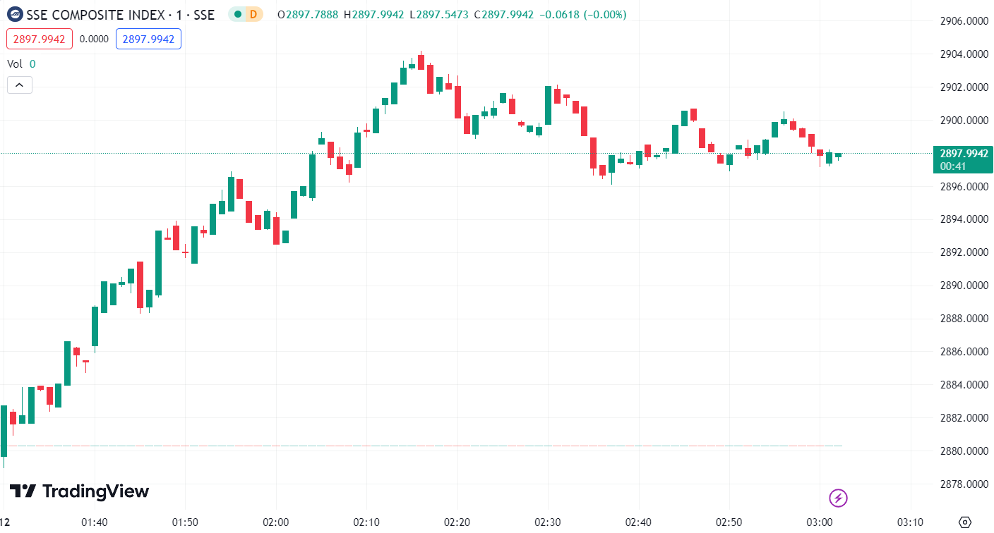 A 股三大指数小幅低开,盘初一小时市场震荡回升,三大指数陆续翻红,其中沪指一度重返 2900 点上方;随后 A 股逐步回落,深成指、创业板指相继翻绿。另外,北证 50 指数盘中跳水,一度跌超 3%。