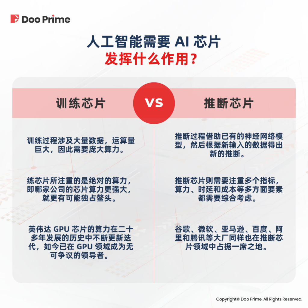 人工智能本质上就是通过使用神经网络对人脑进行模拟,而这其中自然就少不了机器学习的过程。而机器学习的算法步骤则分为两个关键环节:训练( training )推断( inference )这也正是 AI 芯片需要承担的两大任务。