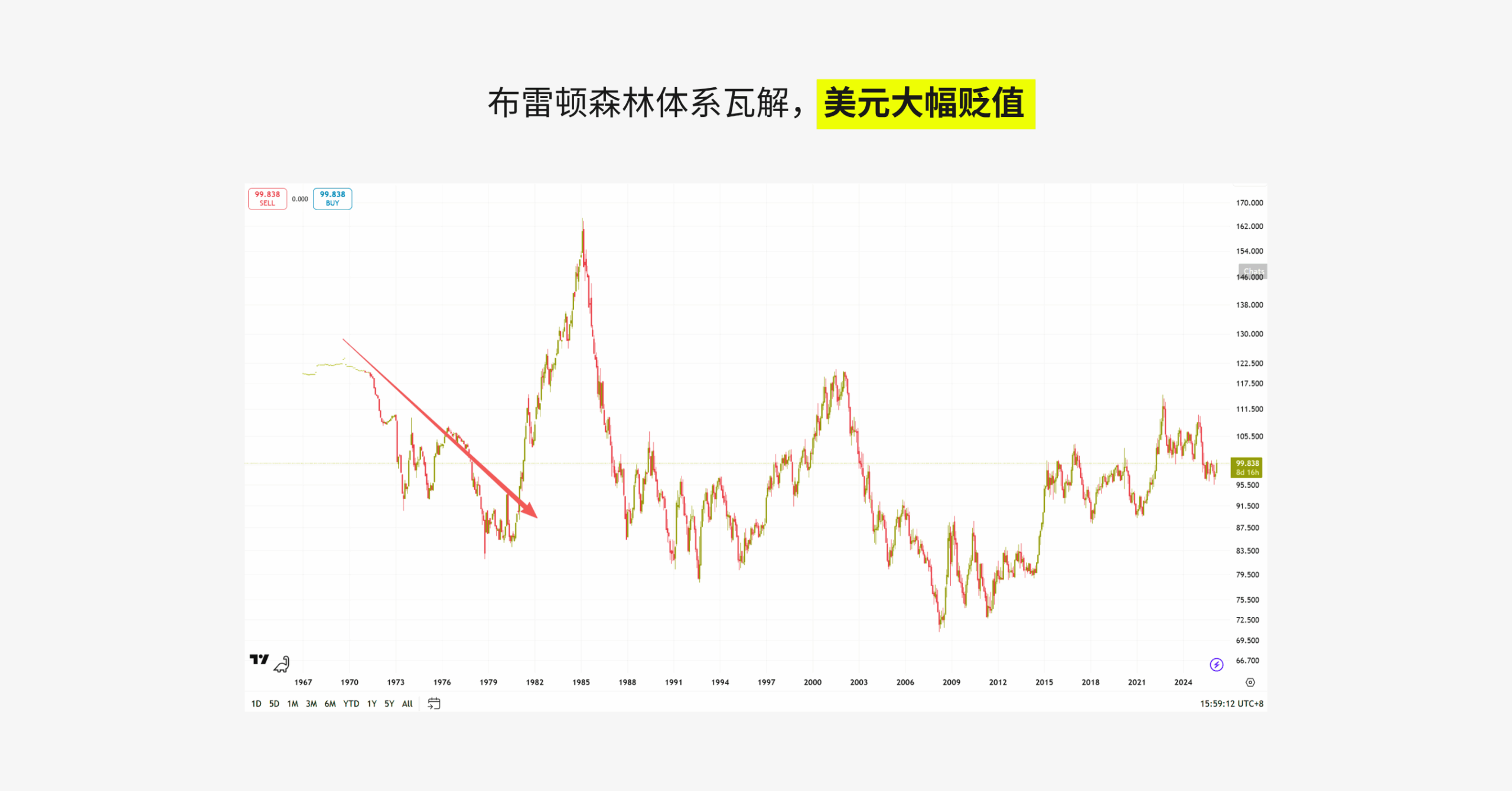 不同的是,由于 1973 年正值布雷顿森林体系瓦解的时候,加上美国贸易逆差不断扩大,黄金储备缩水,美元大幅贬值,进一步削弱了全球资本对美元资产的信心。而这一次危机反而促进了美元的强势。