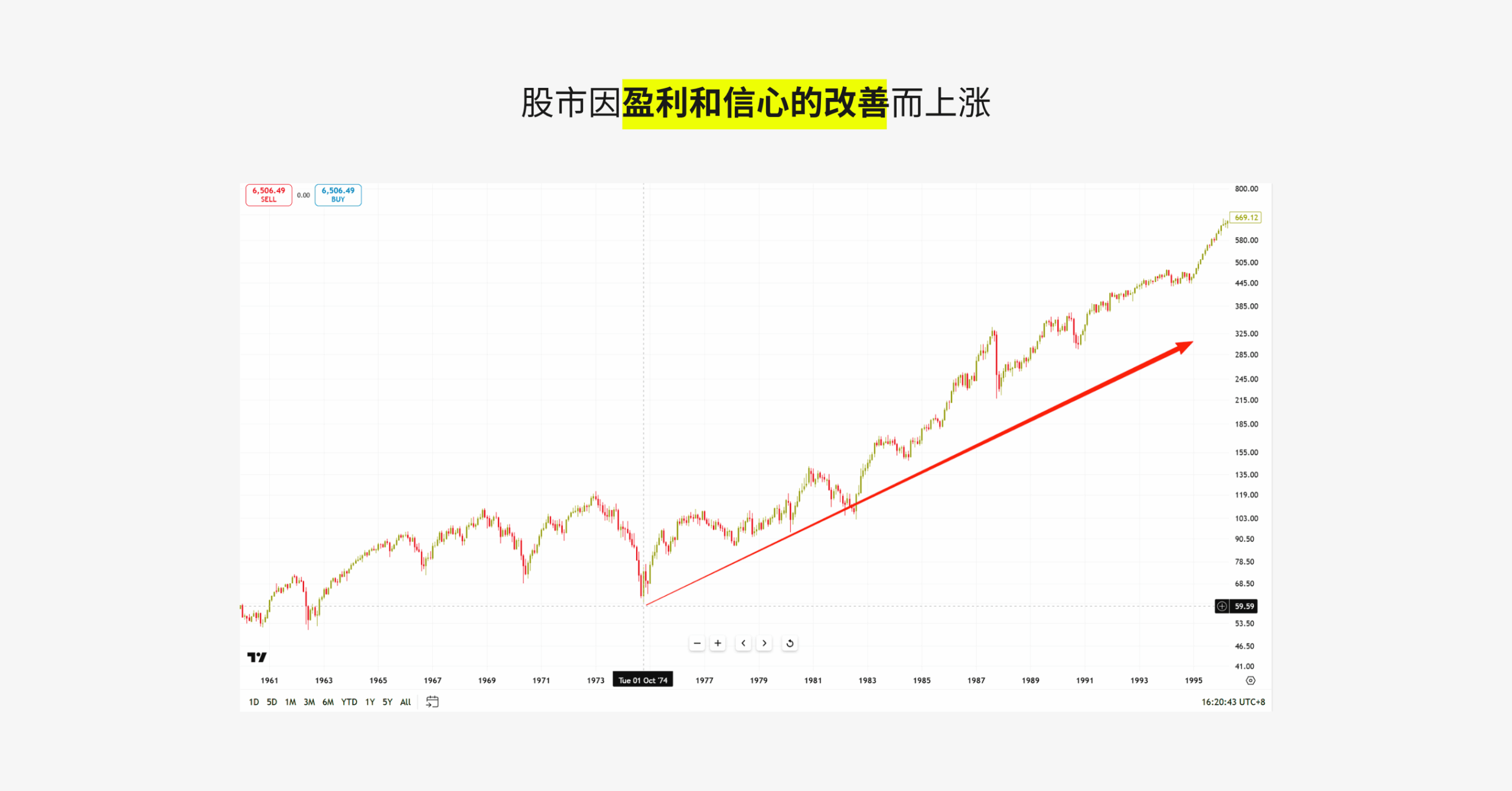 但是,随着市场悲观情绪被消化,股市也跌无可跌,随着盈利慢慢改善,股市开启了长牛行情。在第二轮滞胀中,也就是 1976 ~ 1980 年间,股市表现不俗,这一阶段股市盈利上涨全凭业绩驱动,加上信心恢复,估值也逐渐修复。