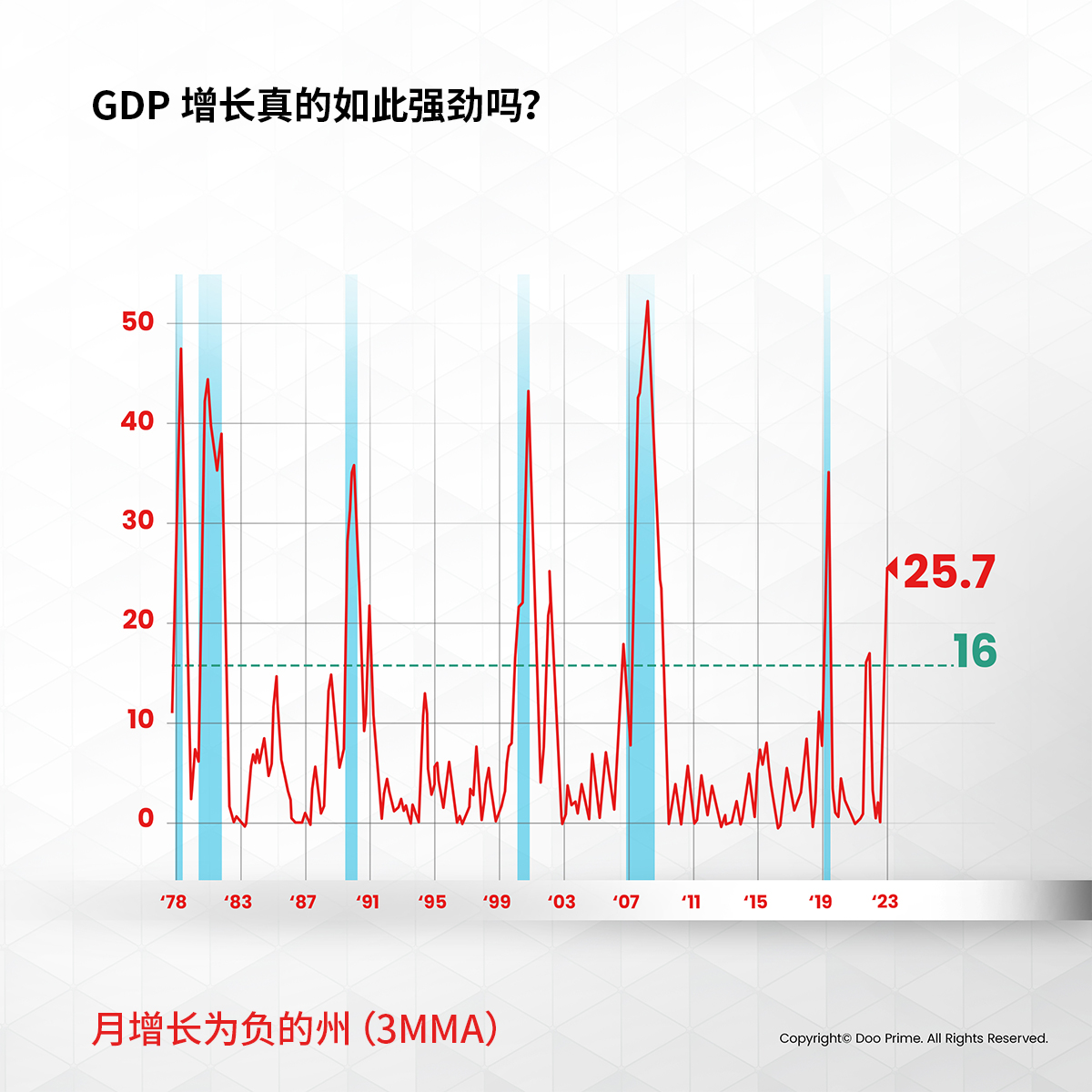 根据历史经验,每当超过 16 个州经济放缓,美国国家经济研究局(National Bureau of Economic Research)随后便会宣布经济衰退。