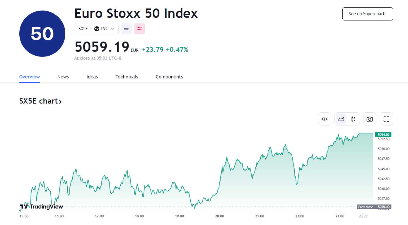 同日,欧股斯托克 50 指数高开高走,收涨 0.47%,斯托克 600 指数收涨 0.32%,欧元区主要国家股指多数走高。