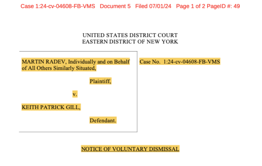 然而,在美东时间周一下午提交给法院的一份文件中, Martin Radev 自愿驳回了这起诉讼。