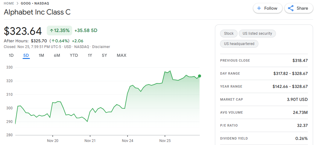 Google 借 Gemini 3 强势逆袭 AI 竞赛,市值逼近 4 万亿美元
