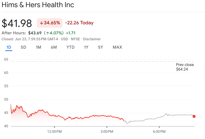 丹麦制药巨头诺和诺德(NVO)周一宣布,因担忧美国远程医疗平台 Hims & Hers(HIMS)涉嫌违规销售和推广仿制减肥药 Wegovy,决定终止与该公司的合作关系。此消息导致 Hims & Hers 暴跌近 35%。