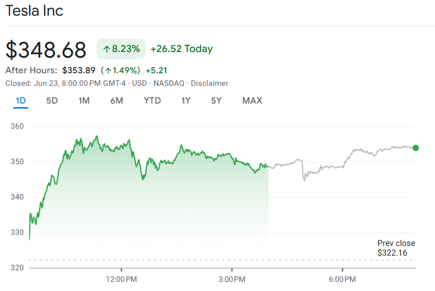 行业动态 | Robotaxi 服务正式启动,每趟僅收 4.20 美元,特斯拉股价收涨 8%