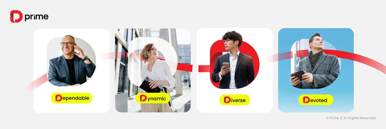 自 Doo Prime 诞生之初,我们便坚信,交易不仅是数字的博弈,更是对市场脉搏的敏锐洞察、对全球客户需求的极致回应。以此价值理念为锚点,我们正式宣告 Doo Prime 升级为 D Prime——以「D」为精神符号,凝练品牌基因,开启全新篇章。此次蜕变不仅是一次视觉革新,更是对品牌内核的深度淬炼。我们以四维品牌精神为支柱,构筑全球交易者的交易殿堂: