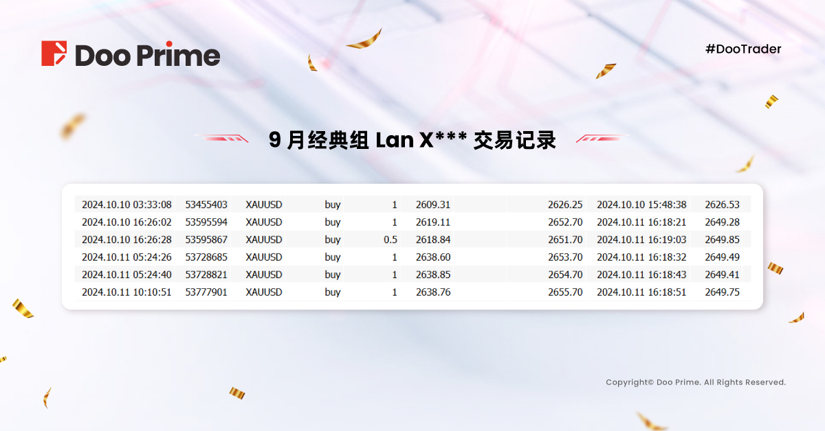 现在让我们一起回顾 9 月赛程的精彩瞬间,学习顶尖选手们脱颖而出的成功之道,向 #DooTrader 至尊杯十周年交易大赛中的冠军宝座发起冲击,瓜分高达 180,000 美元的奖金池!
