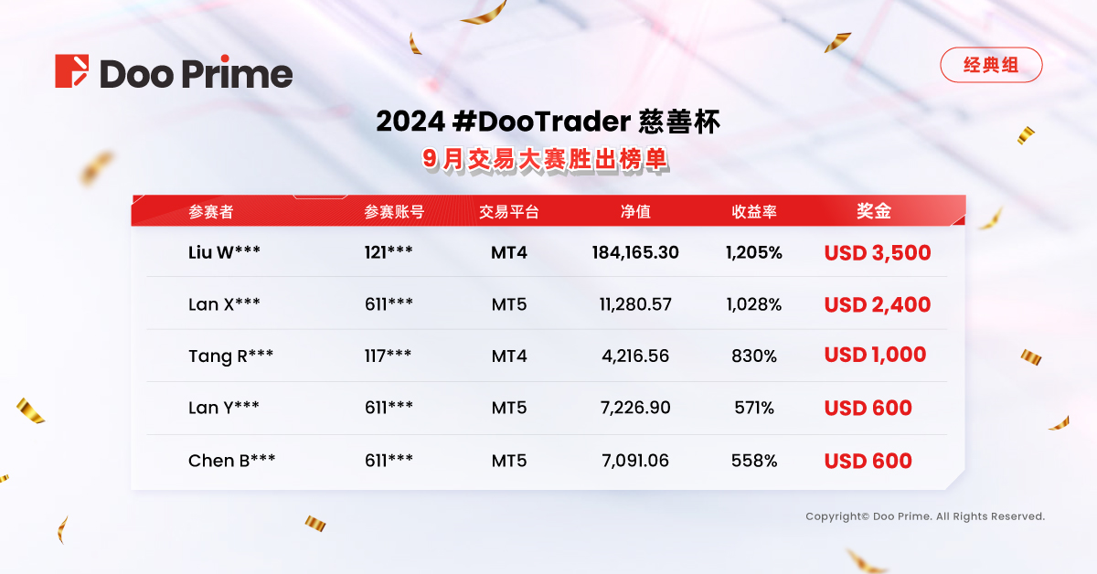 2024 #DooTrader 慈善杯 9 月交易大赛赛果出炉,选手以 1,200% 收益率问鼎冠军!