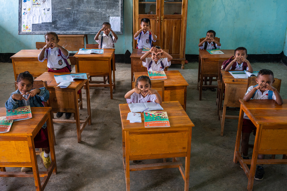 นักเรียนชั้นประถมศึกษาปีที่ 1 ของโรงเรียนประถมทูนัวกำลังศึกษาในห้องเรียน โดยโครงการมุ่งเน้นให้นักเรียนได้เข้าถึงการเรียนรู้ที่มีคุณภาพมากขึ้น พร้อมกับสร้างความพร้อมของน้ำสะอาด บริการด้านสุขอนามัย และสุขอนามัยส่วนบุคคล ตลอดจนบริการด้านสุขภาพและการคุ้มครองเด็กที่จำเป็น