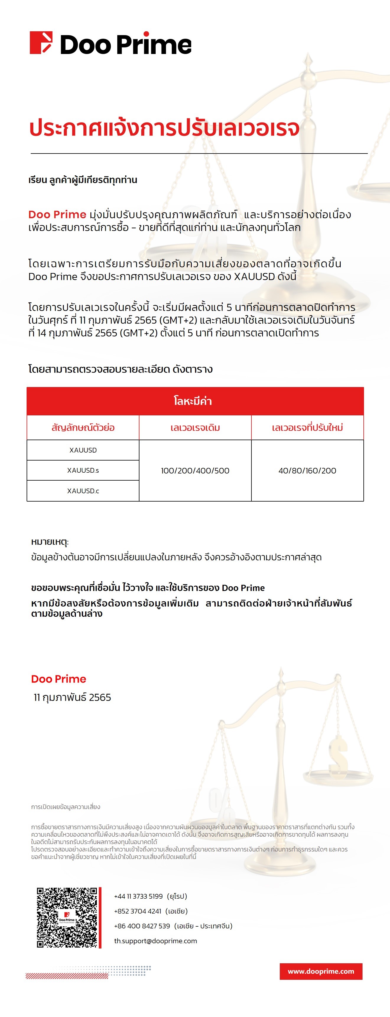 Doo Prime ประกาศแจ้งการปรับเลเวอเรจ