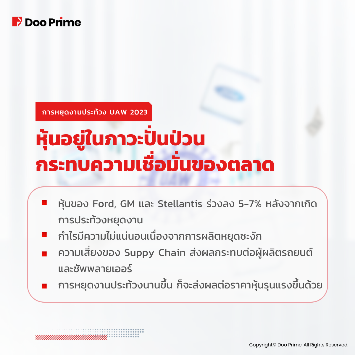 สหภาพแรงงานยานยนต์สหรัฐ (UAW) หยุดงานประท้วง ผลกระทบทางเศรษฐกิจ และตลาด Ford, GM และ Stellantis