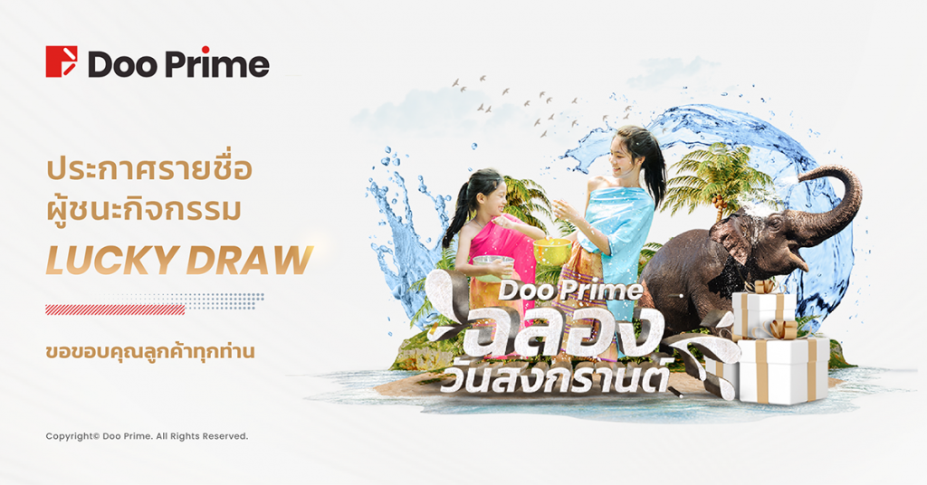 Doo Prime ได้คืนกำไรอีกครั้งกับกิจกรรมเฉลิมฉลองวันสงกรานต์ ที่ลูกค้าทุกท่านจะได้มีสิทธิลุ้นรับรางวัลสุดพิเศษสำหรับลูกค้าของเราโดยเฉพาะ