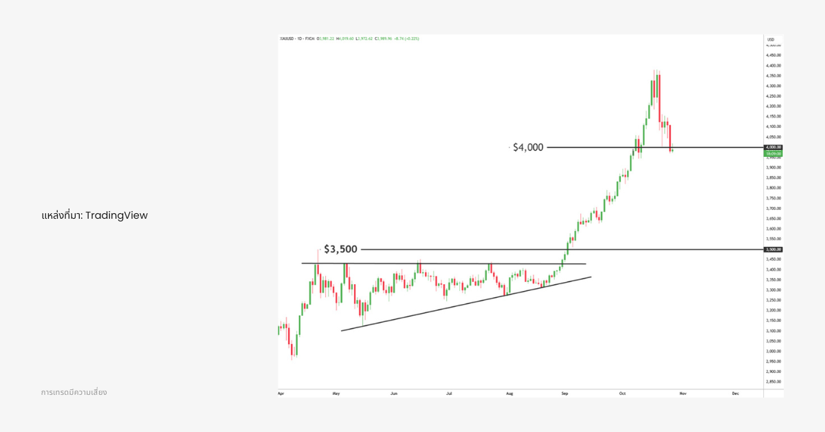 จากมุมมองทางเทคนิค ราคาทองคำเพิ่งแตะระดับสูงสุดตลอดกาลใกล้ 4,300 ดอลลาร์ ก่อนจะย่อตัวลงต่ำกว่า 4,000 ดอลลาร์