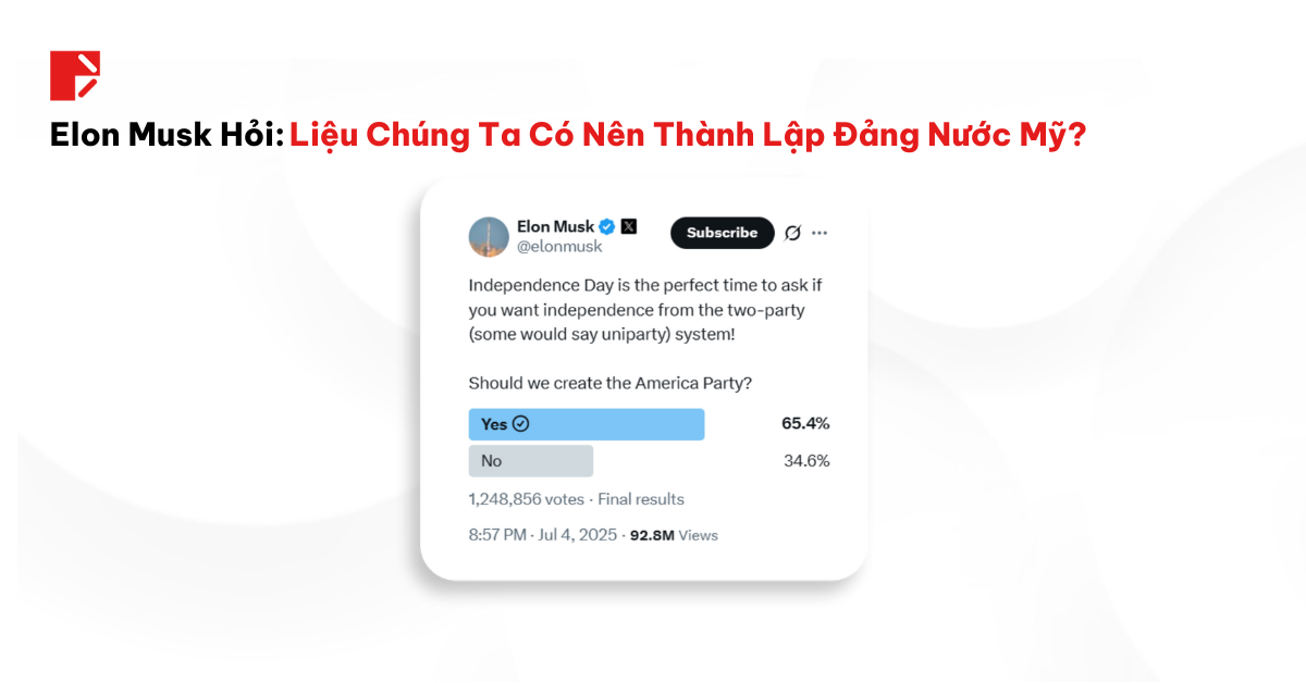 Tỷ phú người Mỹ Elon Musk lại tiếp tục trở thành tâm điểm trên các mặt báo. Lần này không phải bởi tên lửa hay taxi dạng robot, mà vì ông vừa thể hiện một động thái chính trị mới của riêng mình xoay quanh Đảng Nước Mỹ.