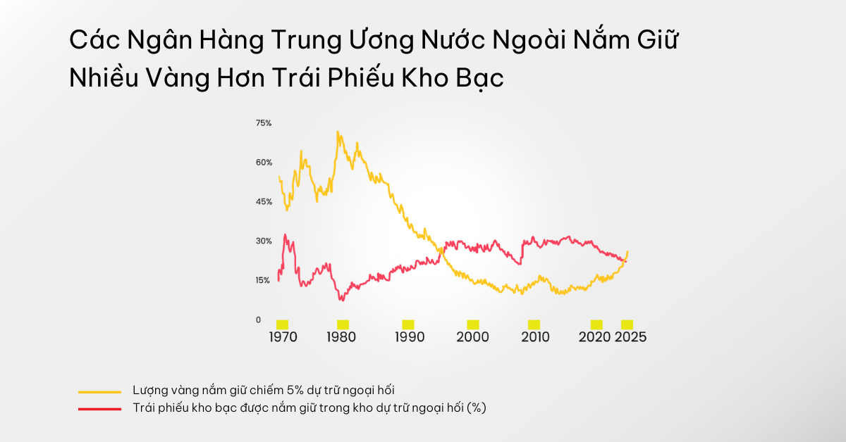 Các ngân hàng trung ương nước ngoài nắm giữ nhiều vàng hơn là trái phiếu kho bạc