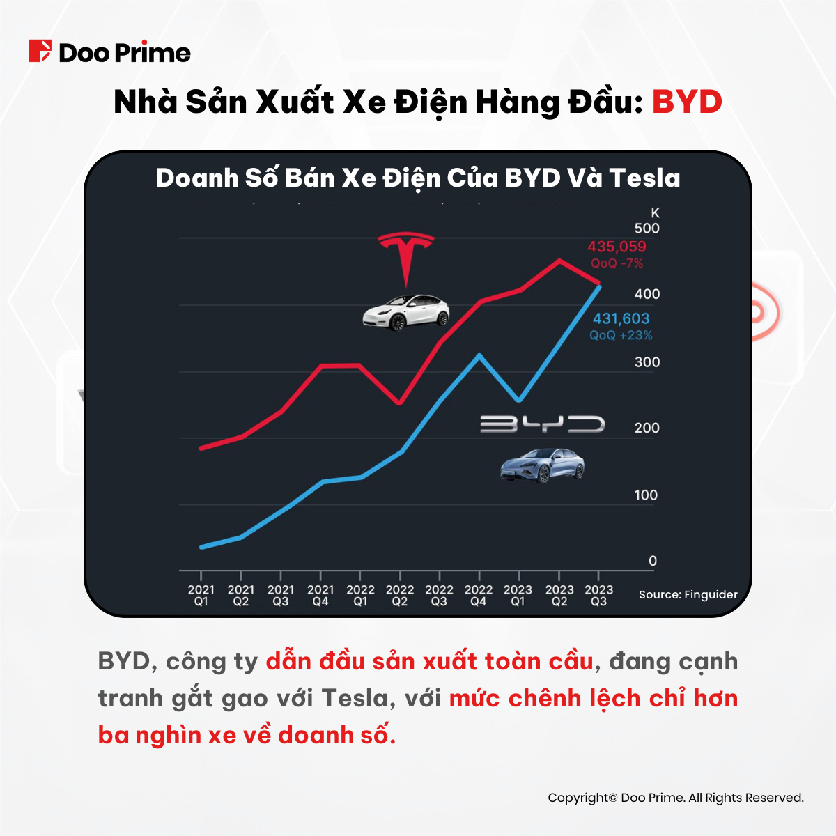 Thành tích đáng chú ý này đã vượt qua mức tăng trưởng 18% hàng năm của Tesla khi họ đạt 430.500 chiếc, đưa BYD trở thành nhà sản xuất xe điện lớn nhất thế giới.