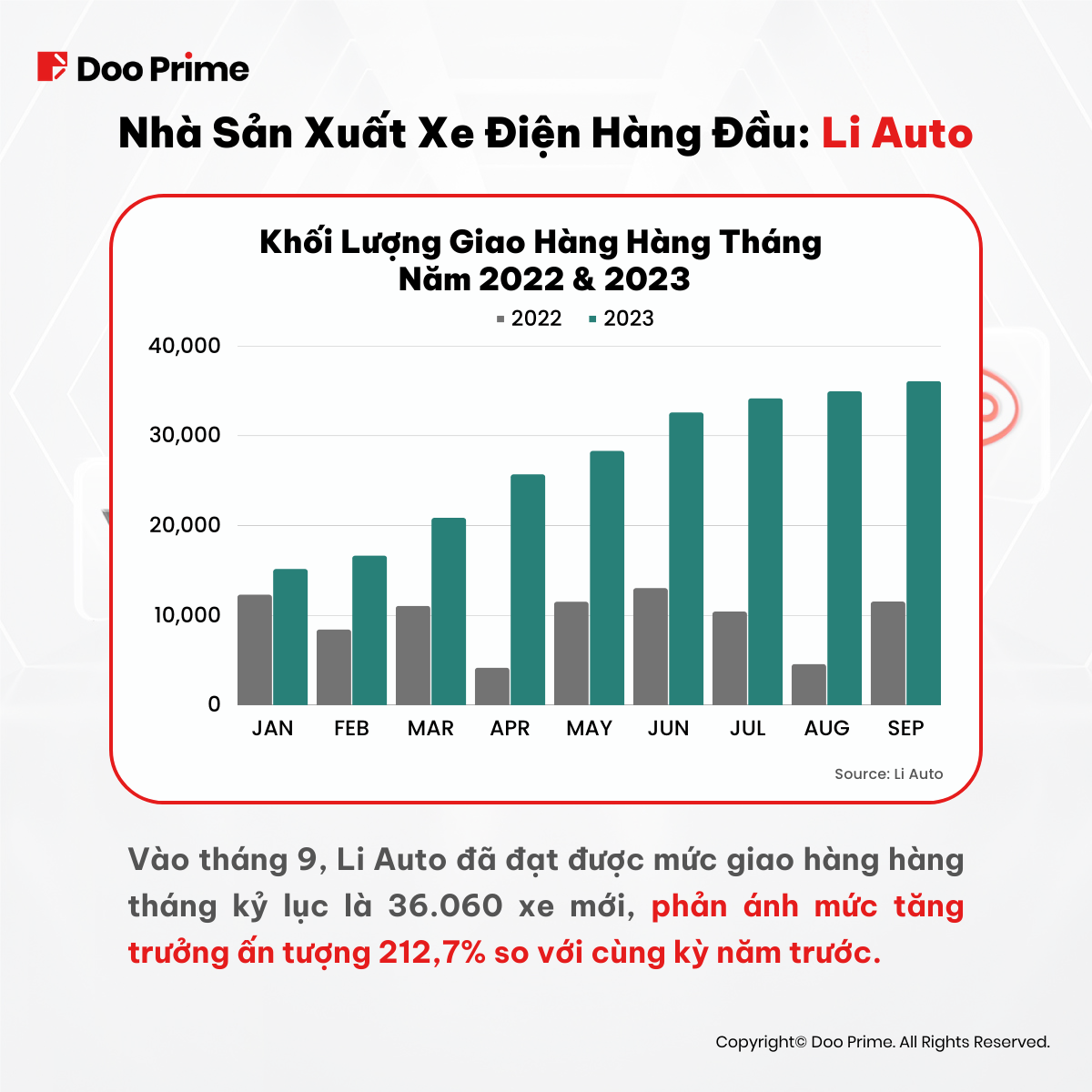 Chỉ riêng trong tháng 9, Li Auto đạt cột mốc giao 36,000 xe, tăng 212,7% so với cùng kỳ năm ngoái và lập kỷ lục mới về lượng giao hàng hàng tháng.